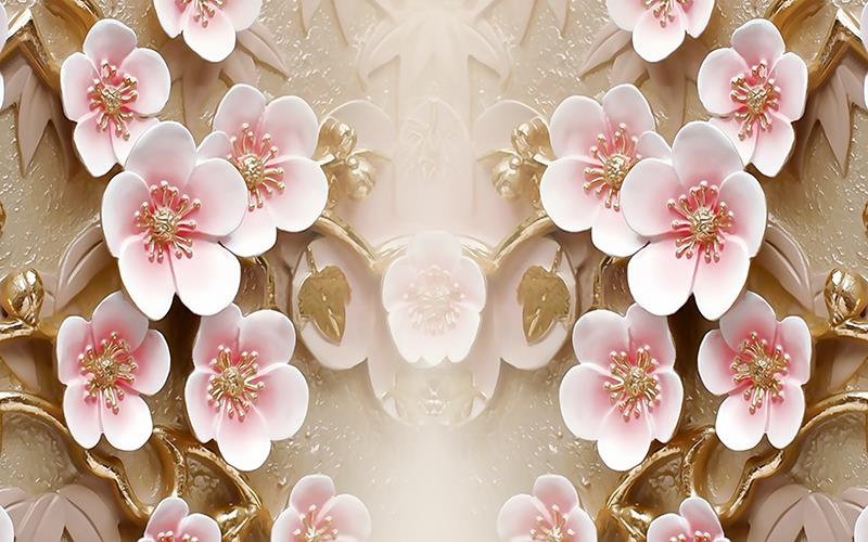 دیوار سنگی با طرح گلهای برجسته طلایی