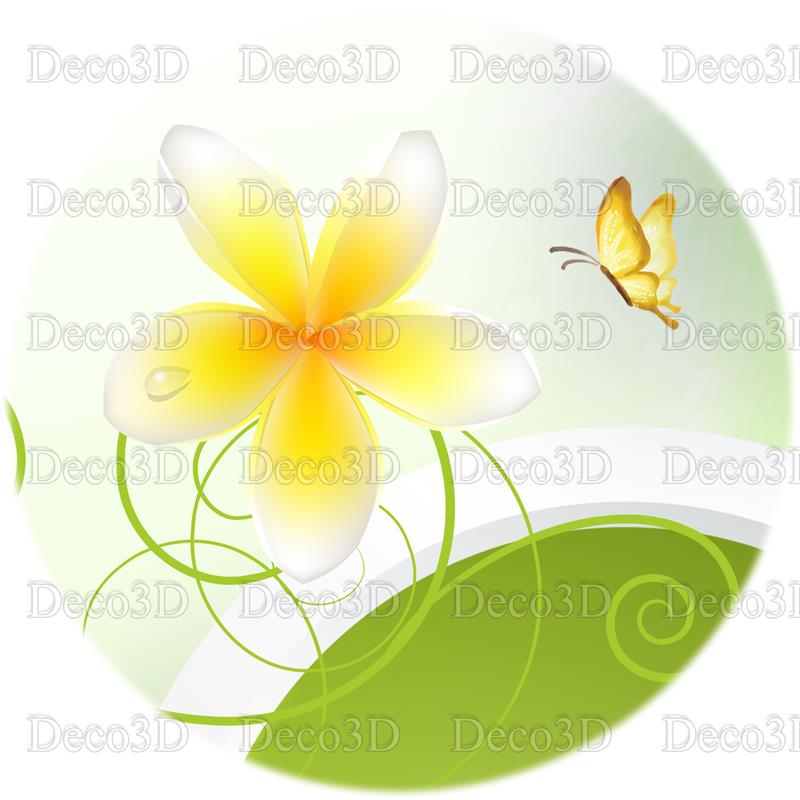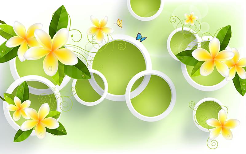 گلهای پنج پر زرد و سفید با حلقه ها و زمینه سبز