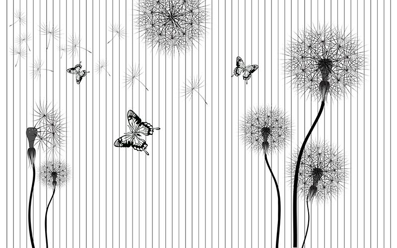 گل های سفید و طلایی با پروانه ها و زمینه ساده