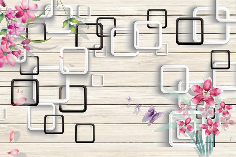 گلهای پنج پر ریز صورتی با زمینه حلقه مربعی