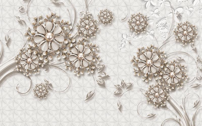 گلهای نقره ای نگین دار با برگهای فلورال
