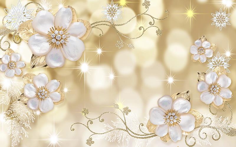 گلهای سفید نگین دار با برگهای فلورال طلایی