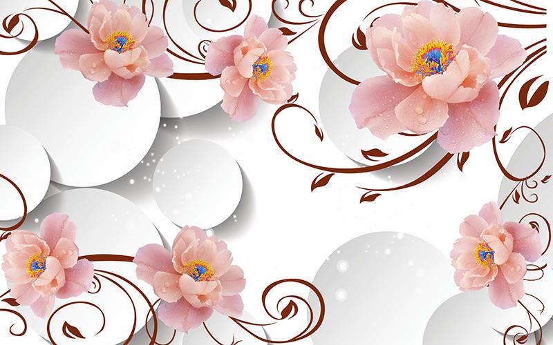 گلهای صورتی با برگهای فلورال و زمینه دایره ای