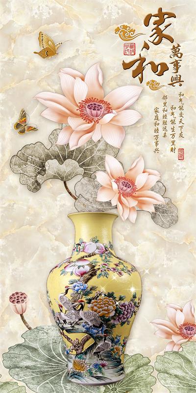 گلهای کرم رنگ سه بعدی با زمینه پرده