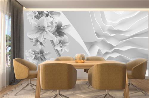 شاخه گل با پس زمینه مواج 3 بعدی