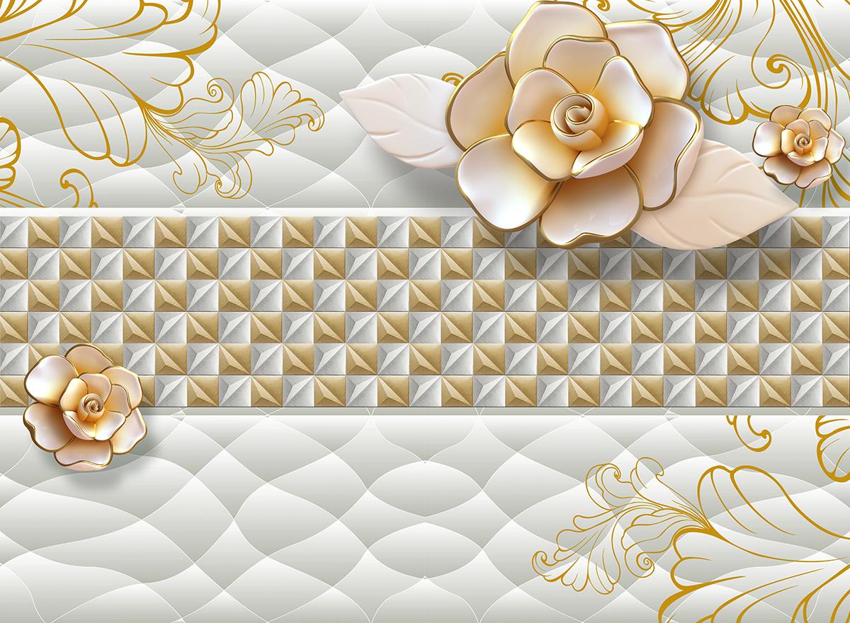 کل ها با زمینه شطرنجی و پارچه ای سه بعدی
