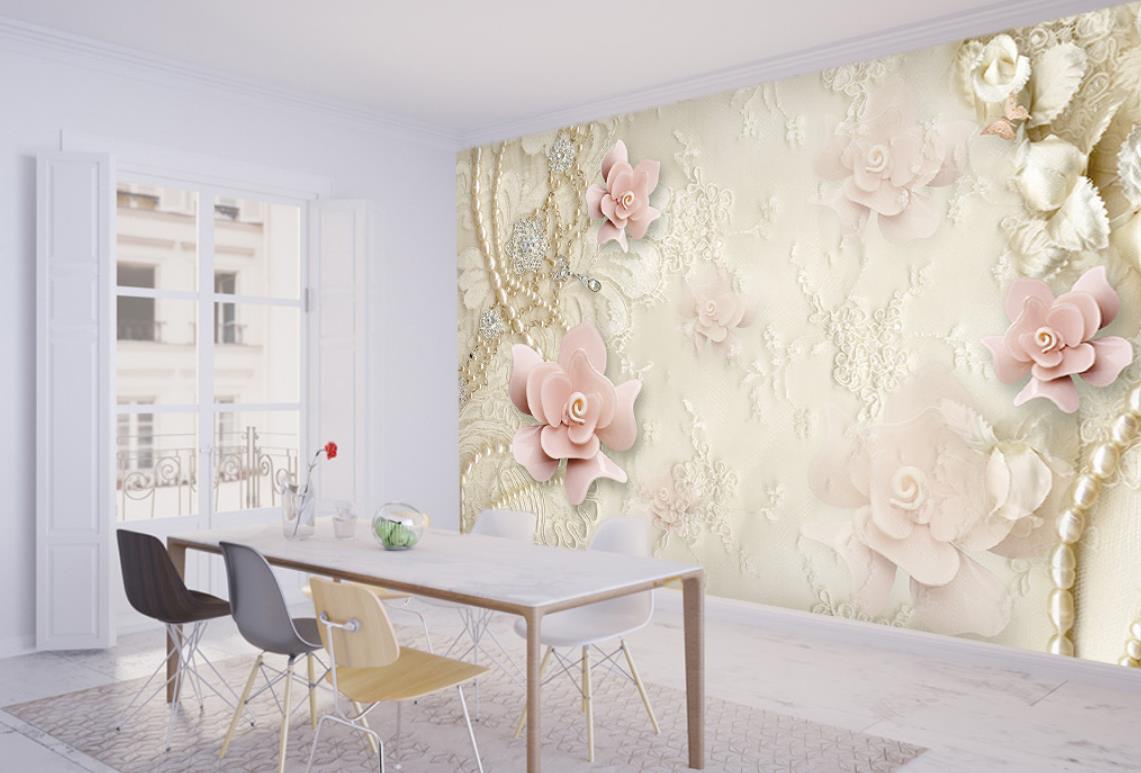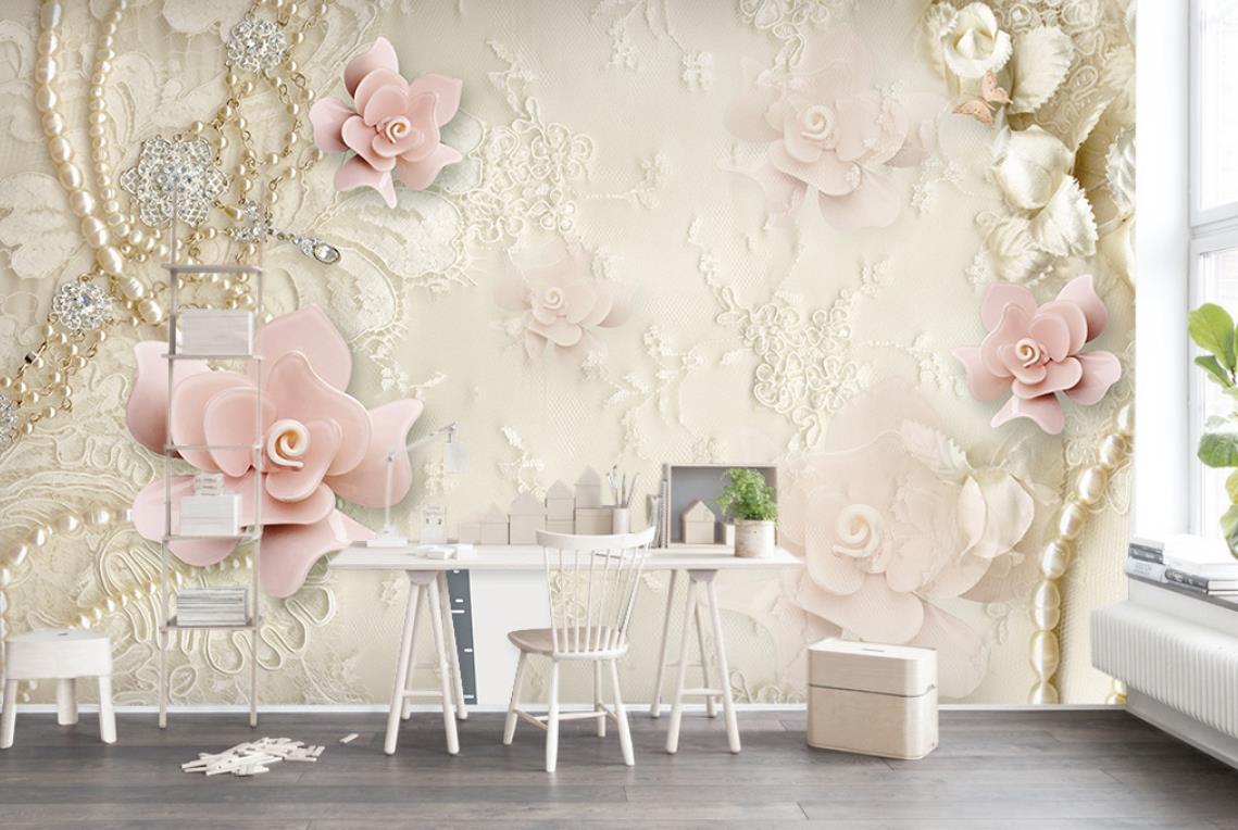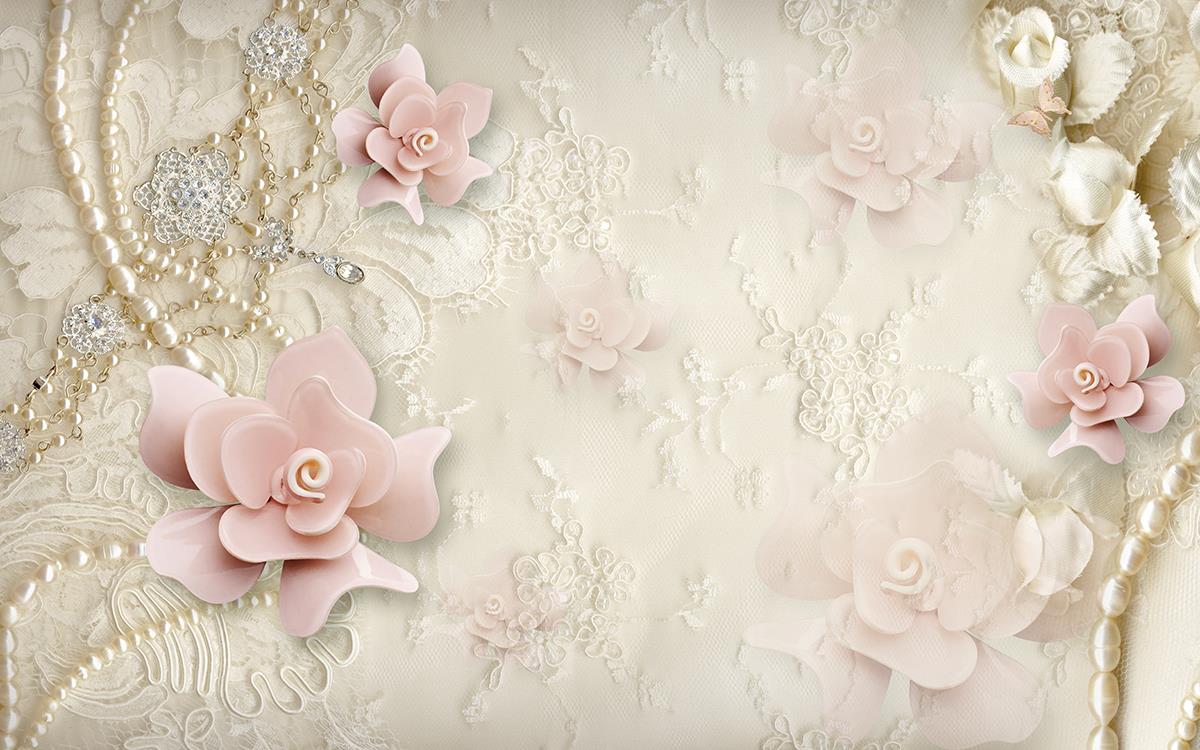 گل های گلبهی رنگ برجسته و جواهرات