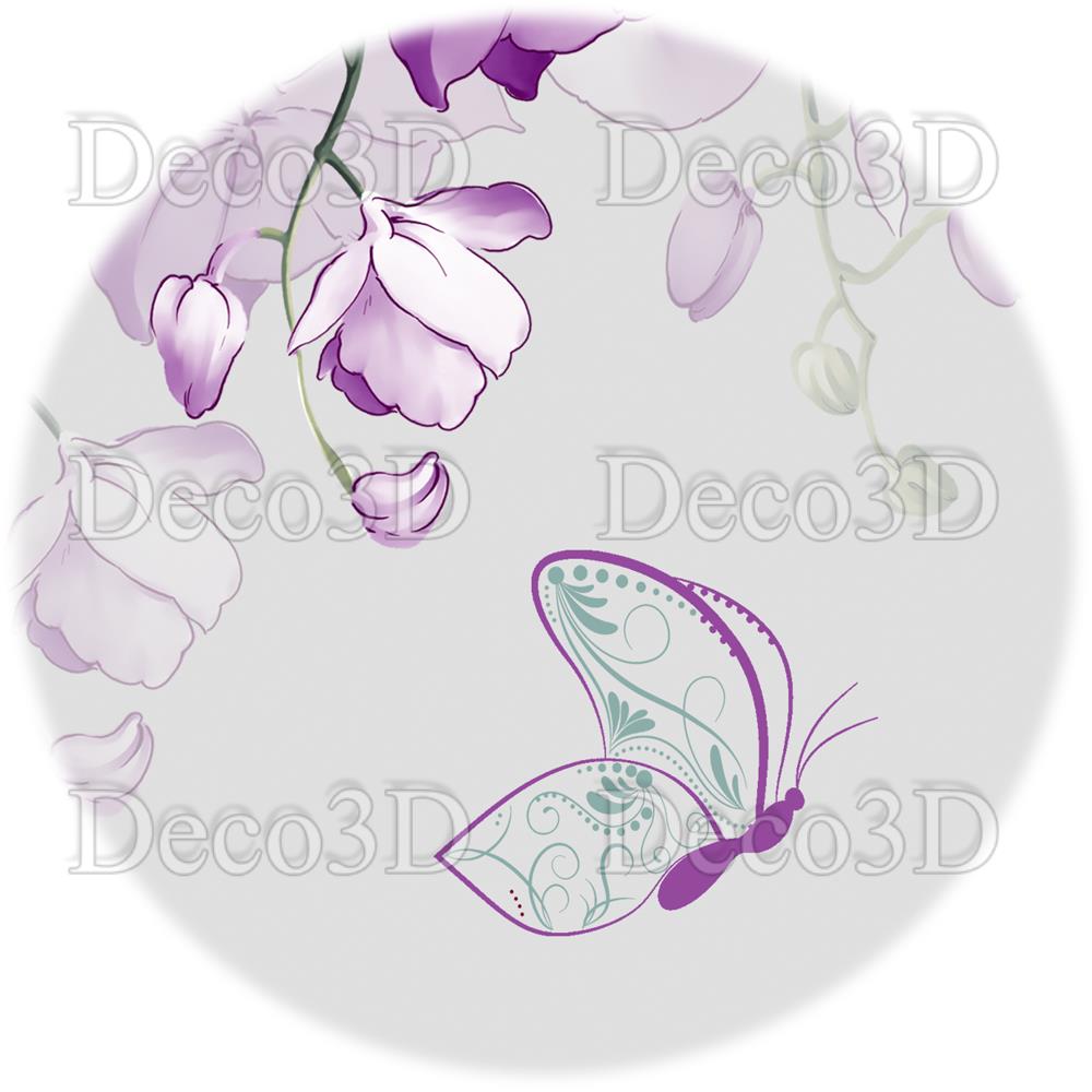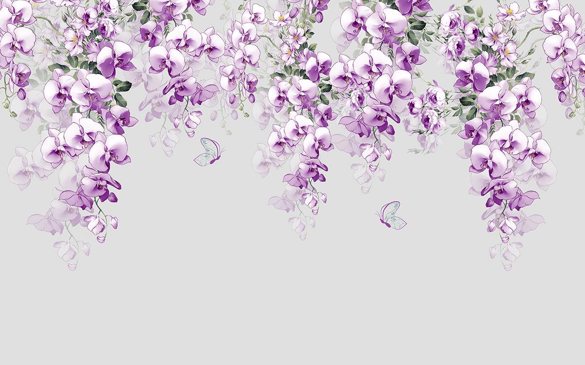 گل های ارغوانی آویزان و پروانه ها با زمینه ساده