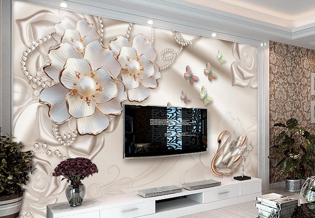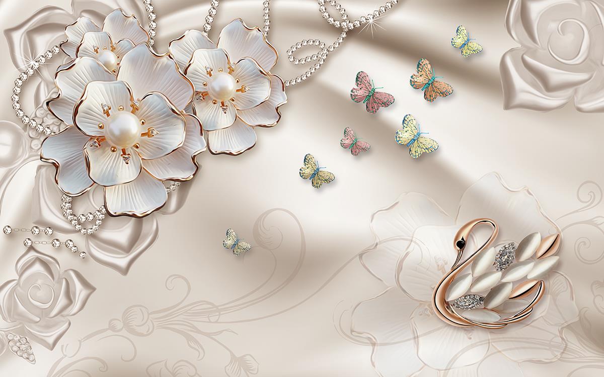 قو، پروانه ها و گل ها