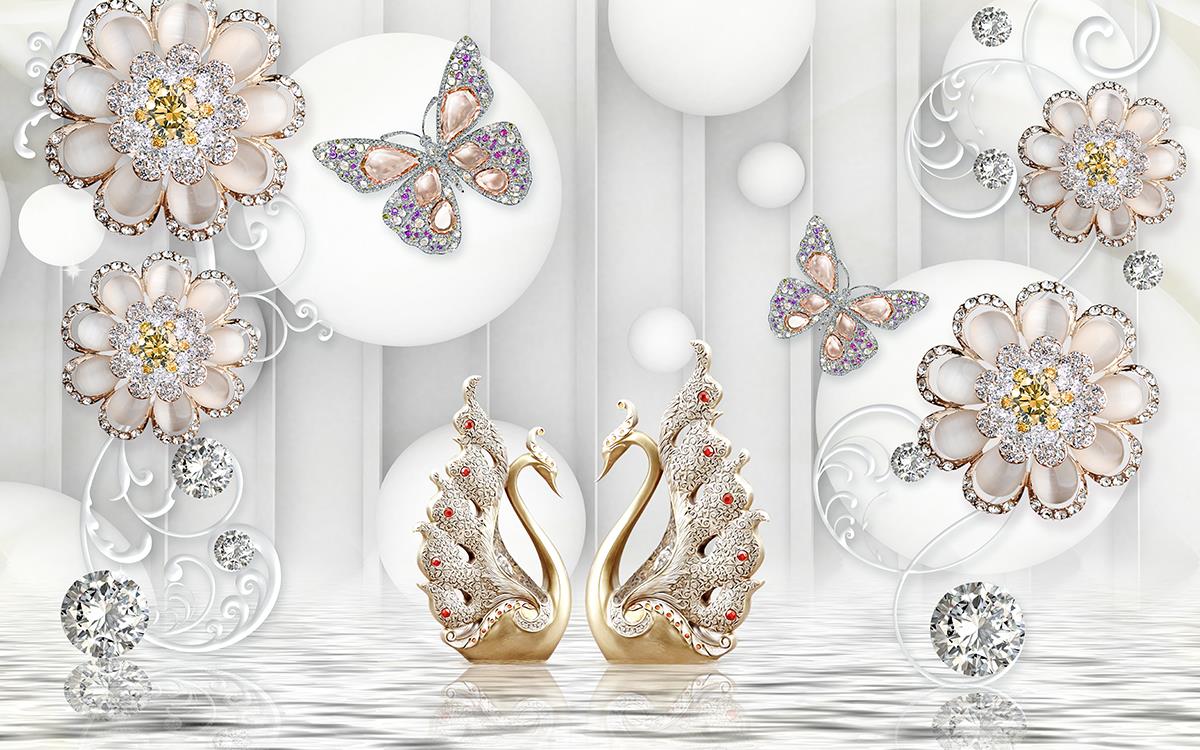 طاووس های الماسی آبی در برکه با پروانه ها