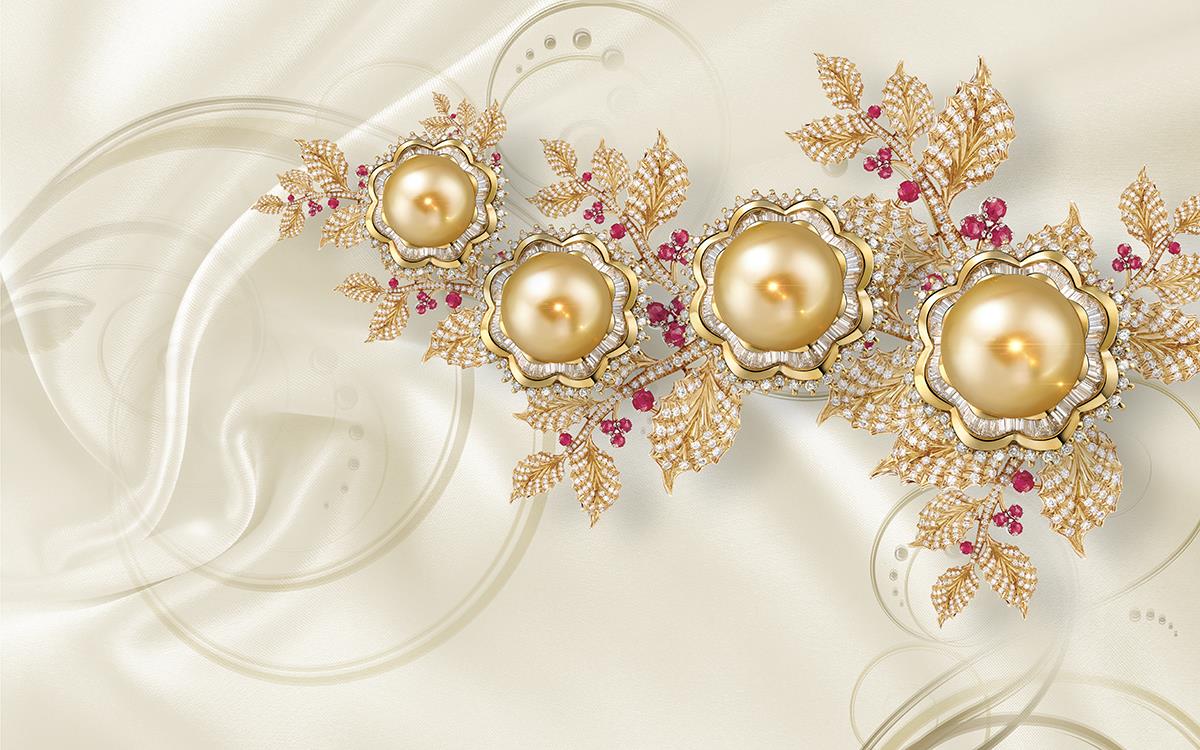 گل های پنج پر برجسته با شاخه های طلایی