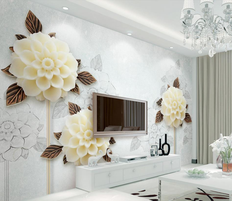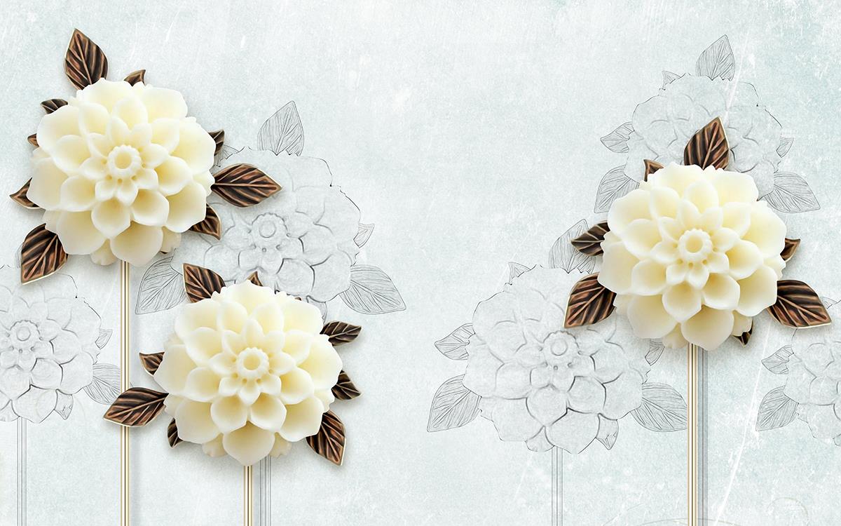 پس زمینه مکعبی سه بعدی و گلهای سفید