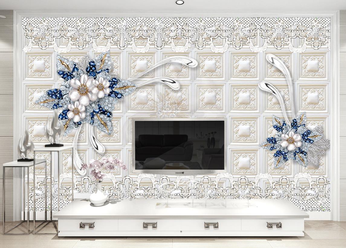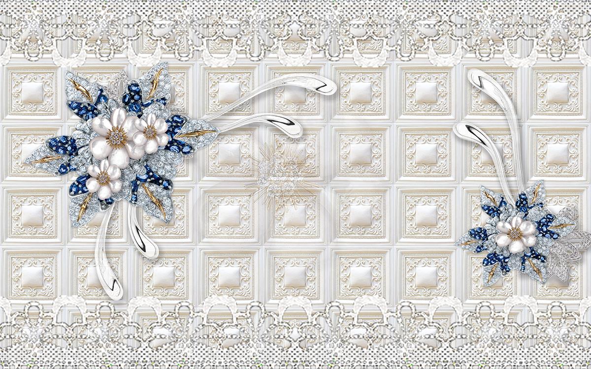 گل های پنج پر بلورین با زمینه مربعی