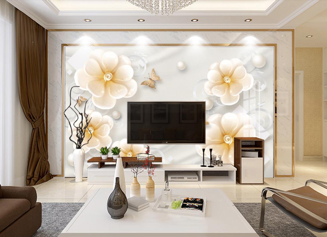 گل های پنج پر 3بعدی با پروانه ها