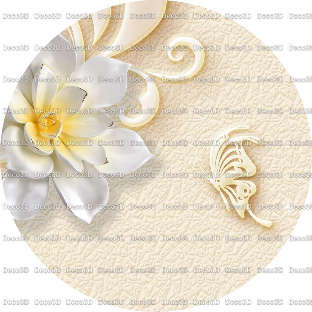 گل های سفید برجسته و پروانه ها
