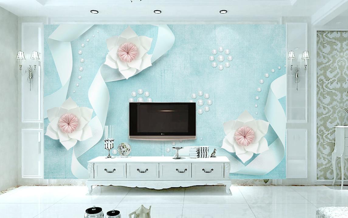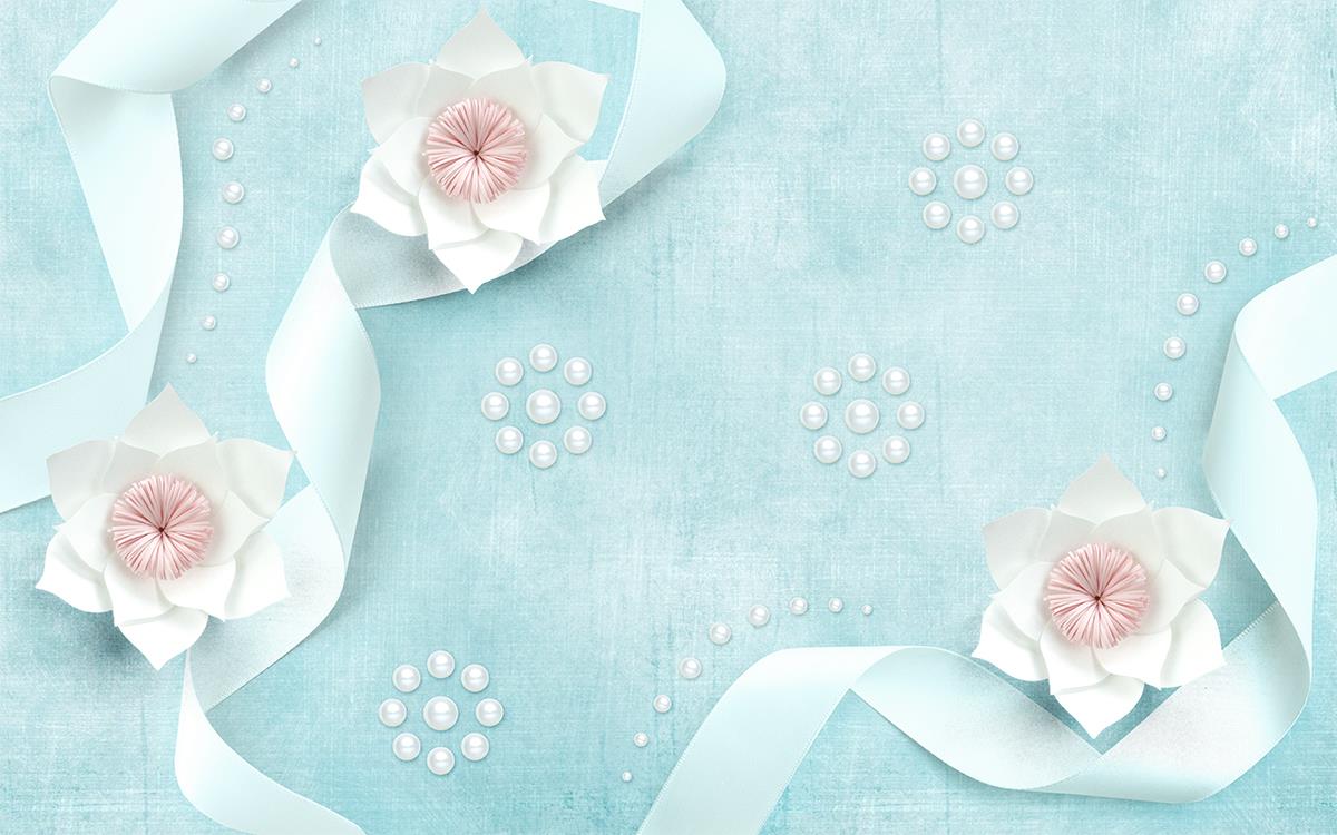 گل های کاغذی و روبان سفید با زمینه ساده