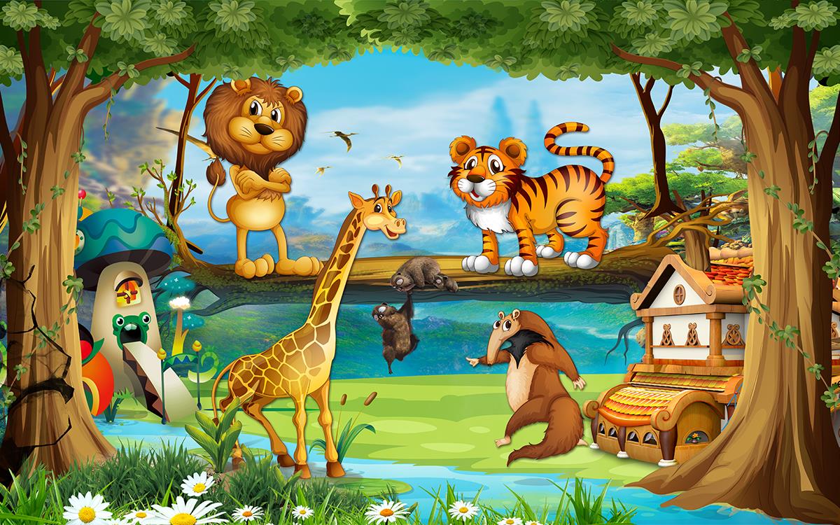طرح کودکانه از جنگل و حیوانات