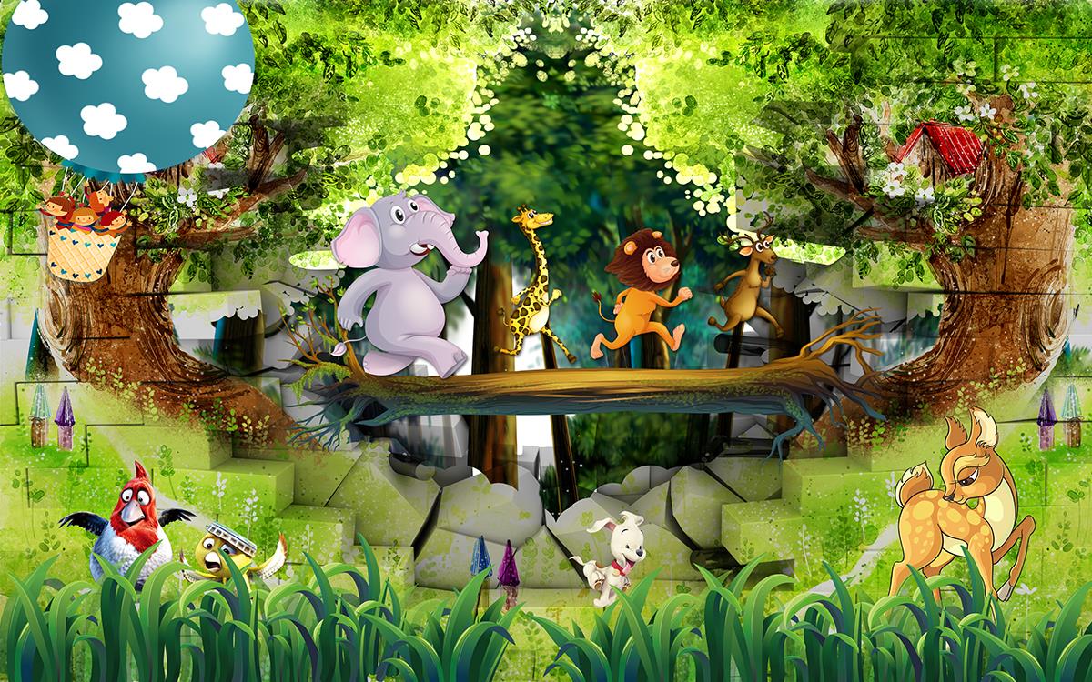 طرح کودکانه از جنگل و حیوانات