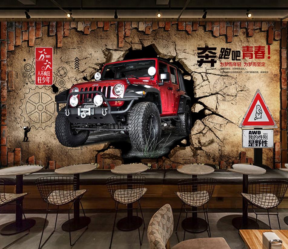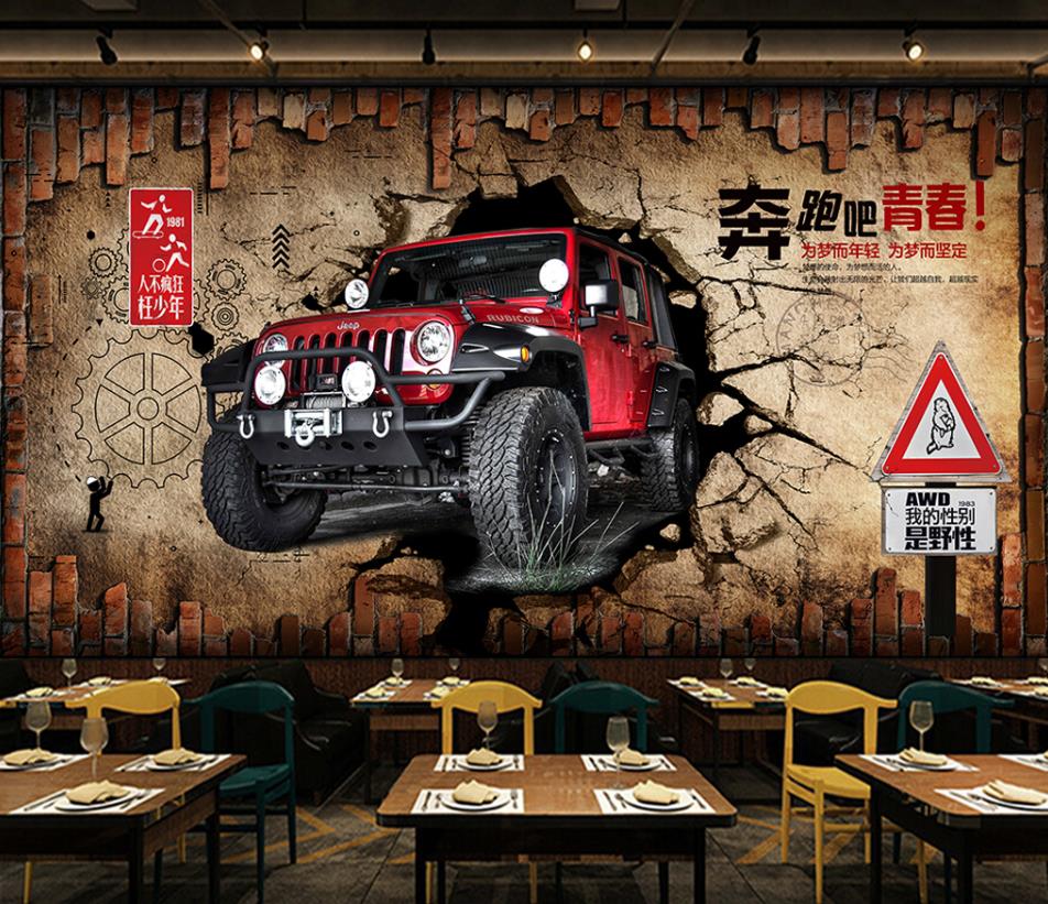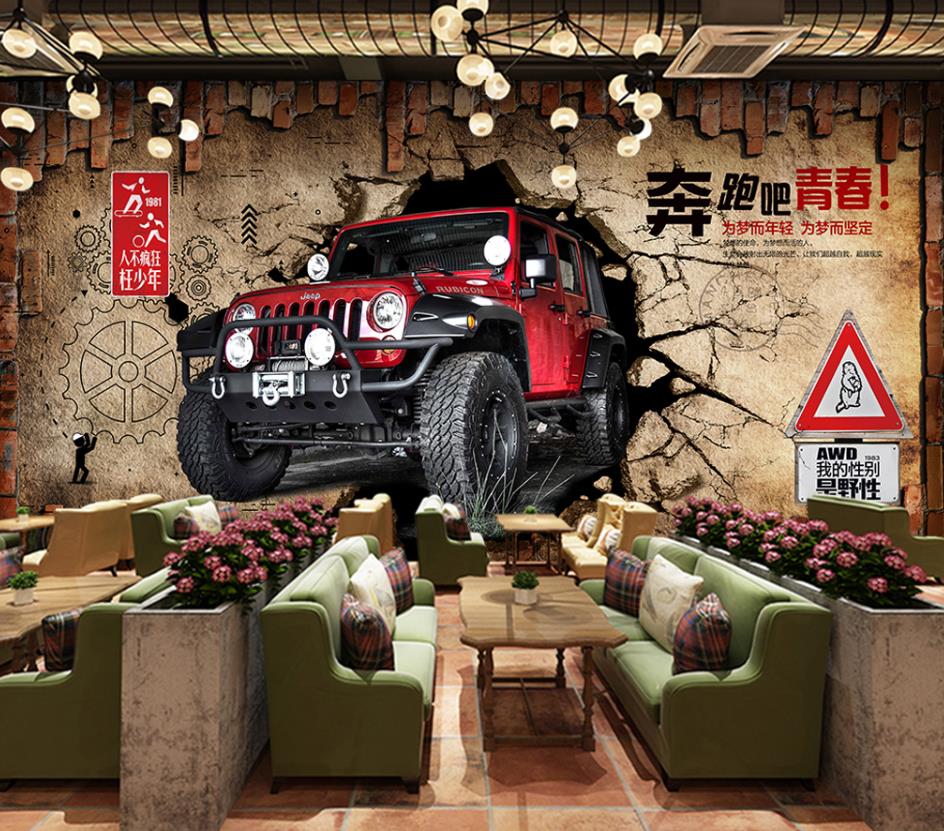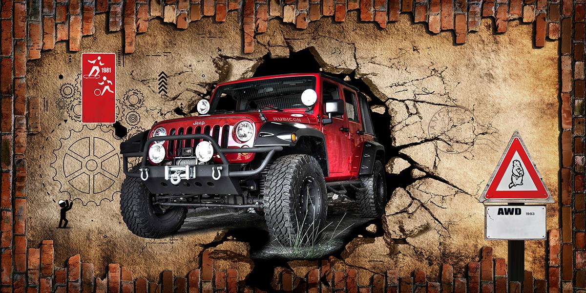 جیپ قرمز در دیوار