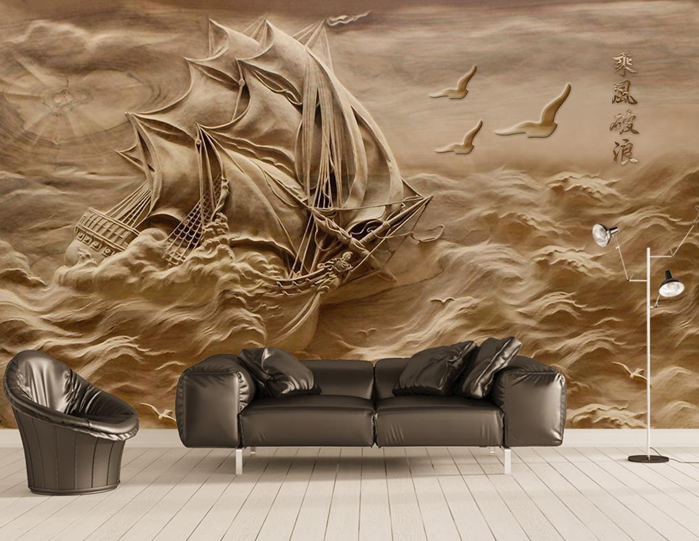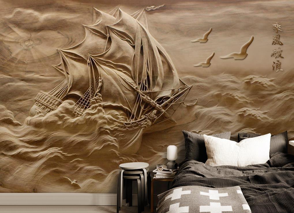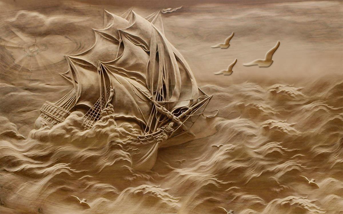 نقش برجسته کشتی در دریای مواج