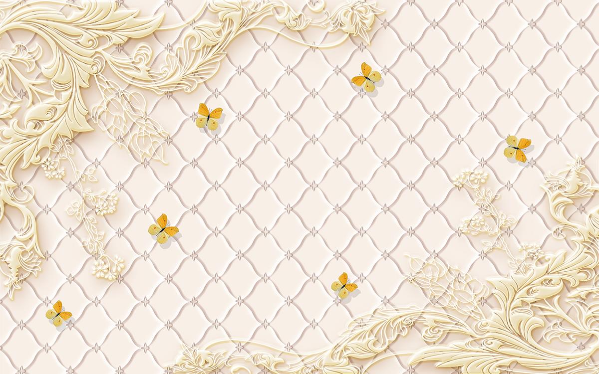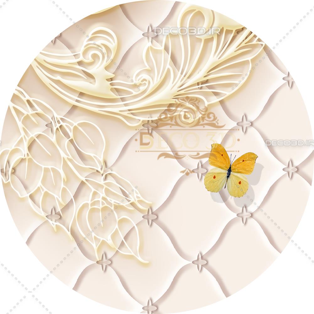 تصویر سه بعدی گل های طلایی نگینی بین دو ستون و طرح پلنگی
