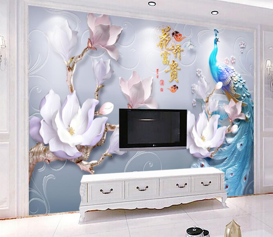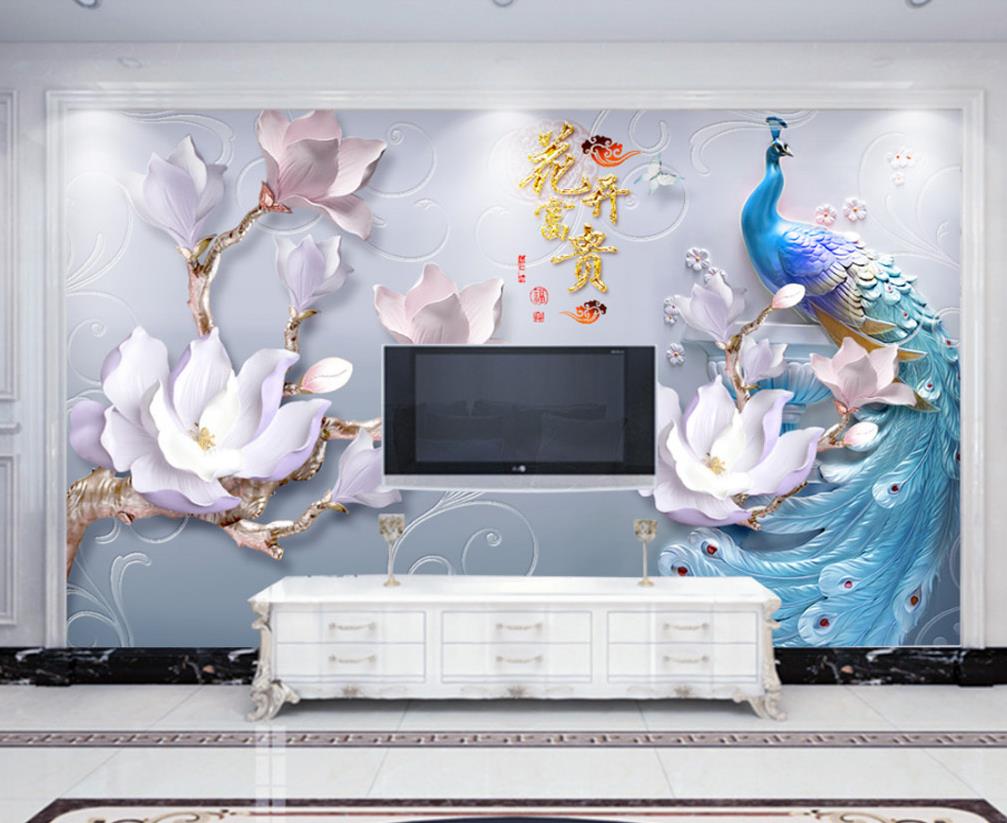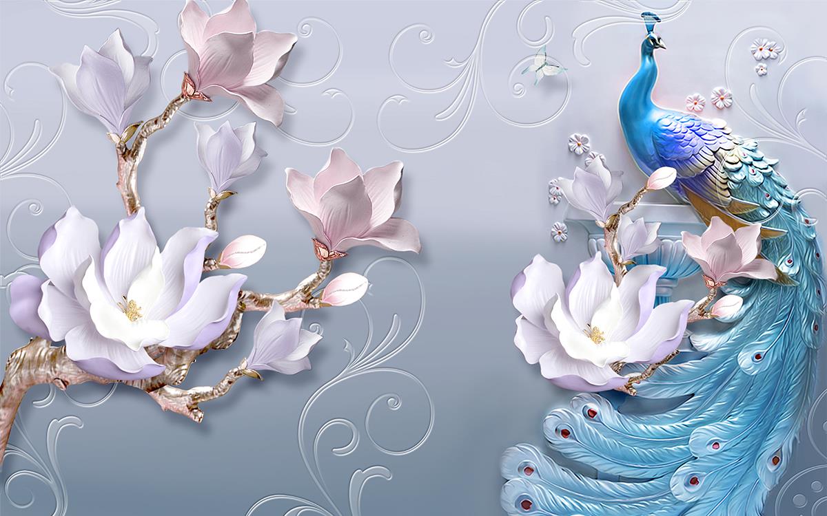 طاووس آبی و گل های برجسته