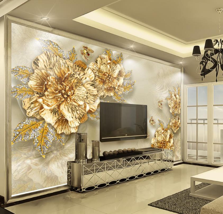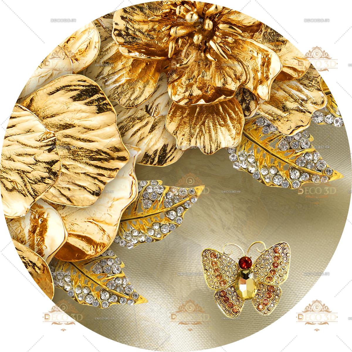 گل ها و پروانه های طلایی برجسته