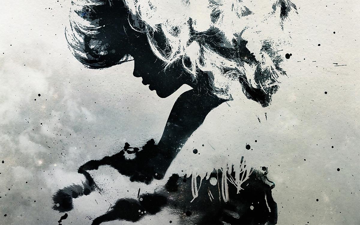 نیم رخ زن با مرکب