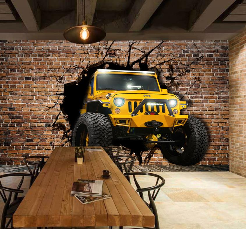 جیپ زرد در دیوار ریخته