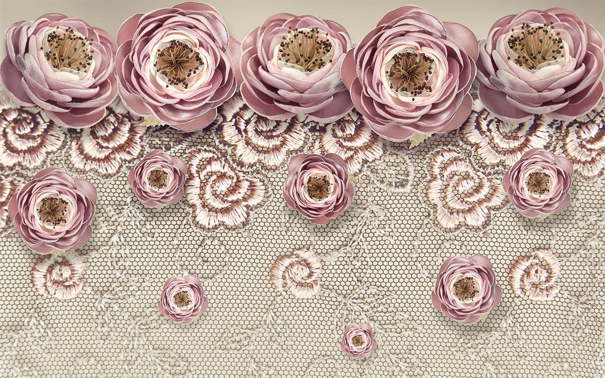 گلهای صورتی با برگهای فلورال و زمینه دایره ای