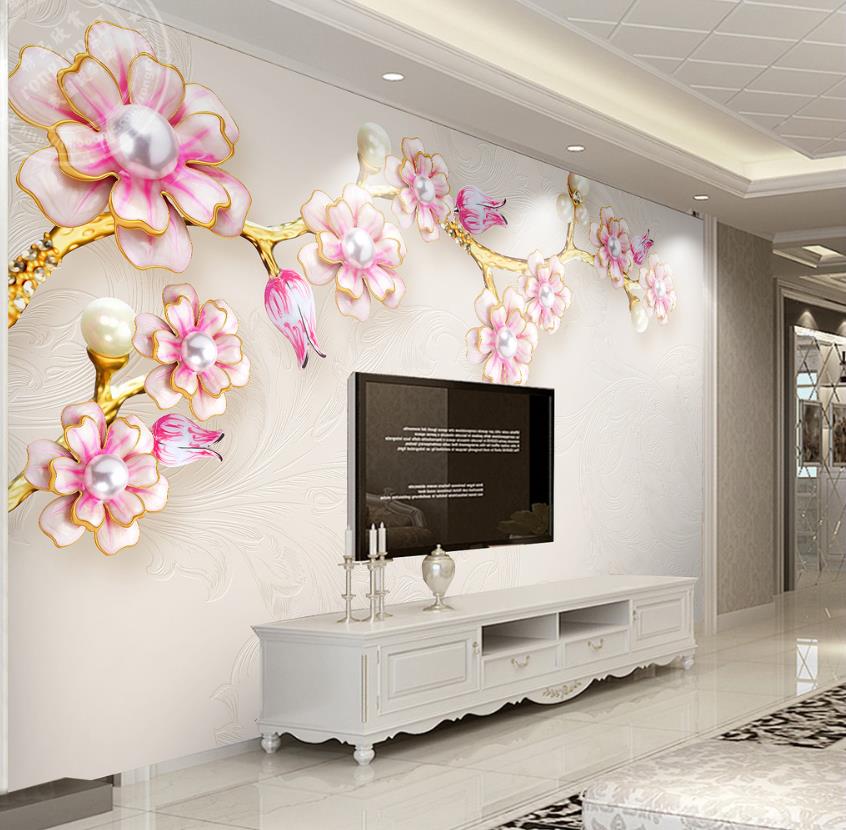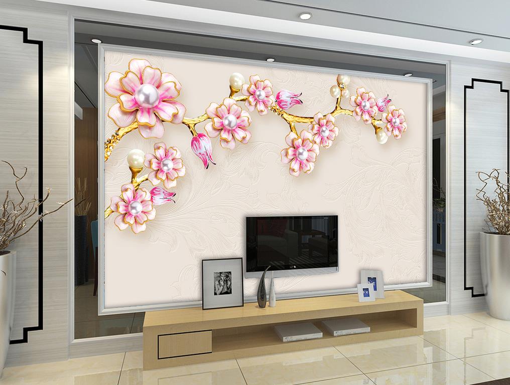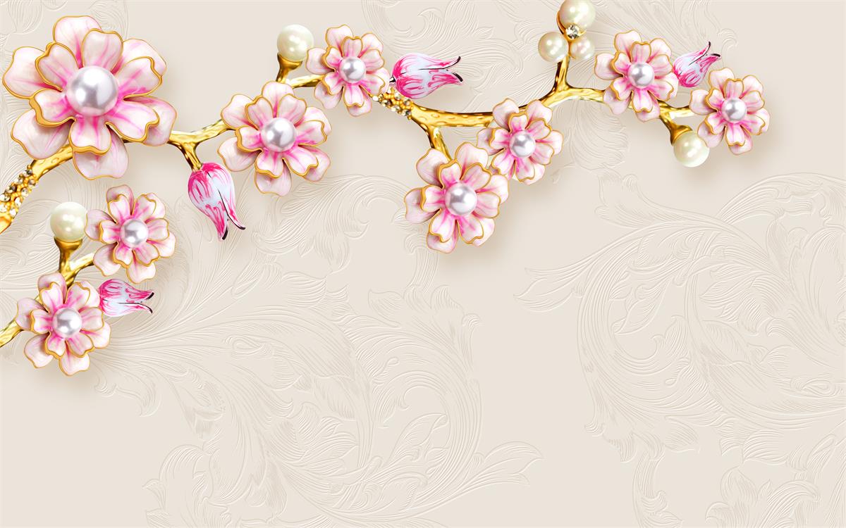 شاخه طلایی با شکوفه های صورتی مرواریدی