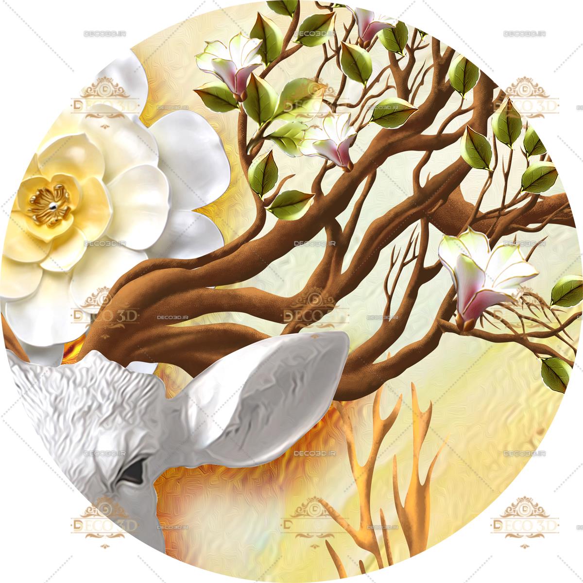 گلهای سفید برجسته با زمینه دایره قهوه ای