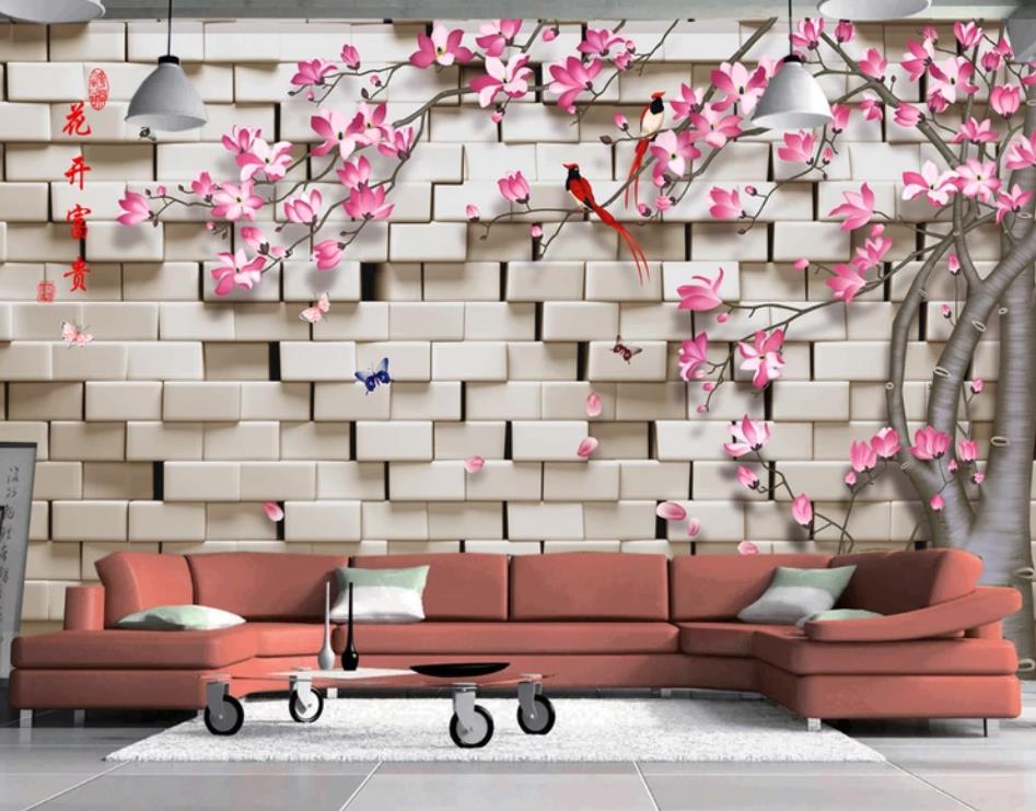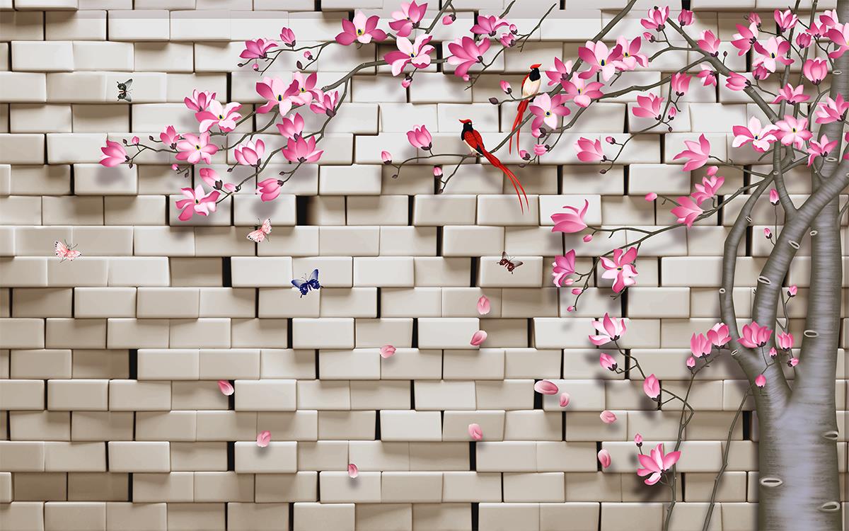 گل ها و شکوفه های سفید بر زمینه آبی 3 بعدی