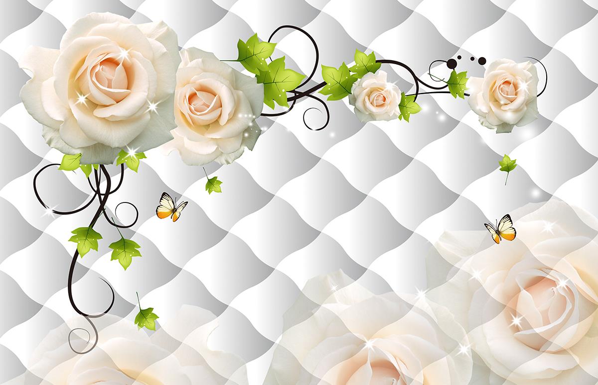 گل های براق با شاخه و برگ پیچان و زمینه موجی
