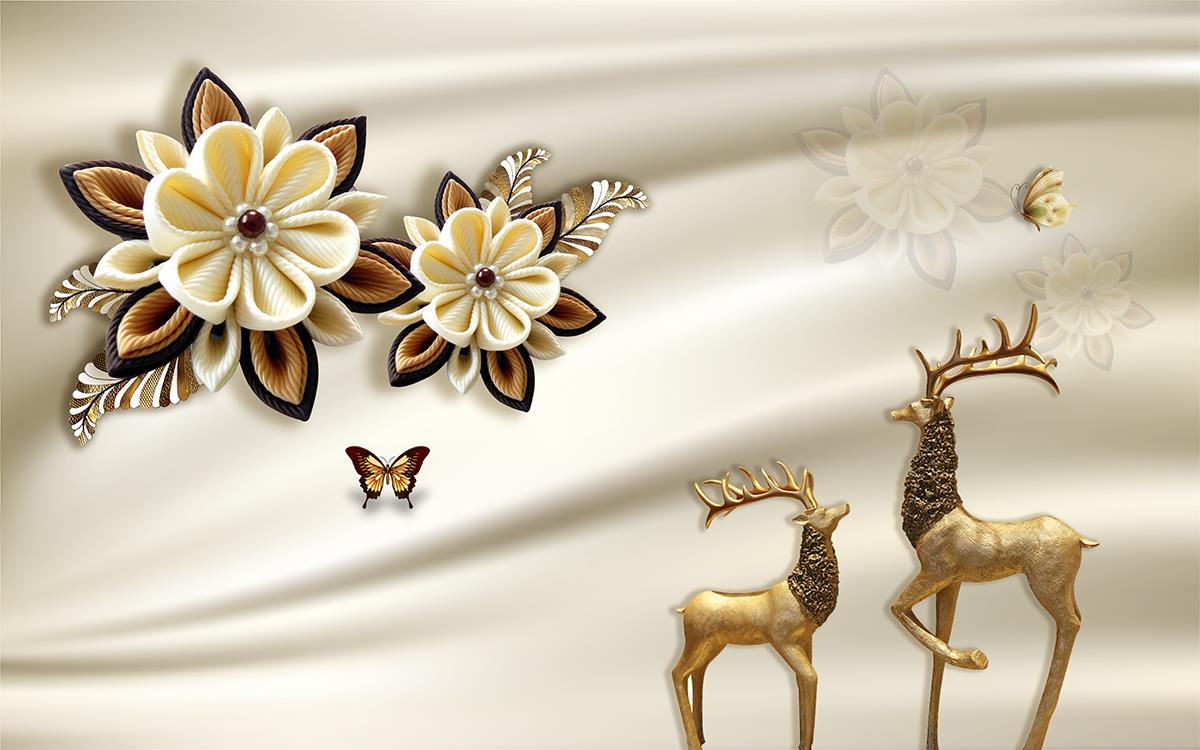 گلهای رز کرمی سه بعدی و مرواریدهای زیبا