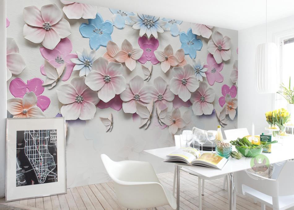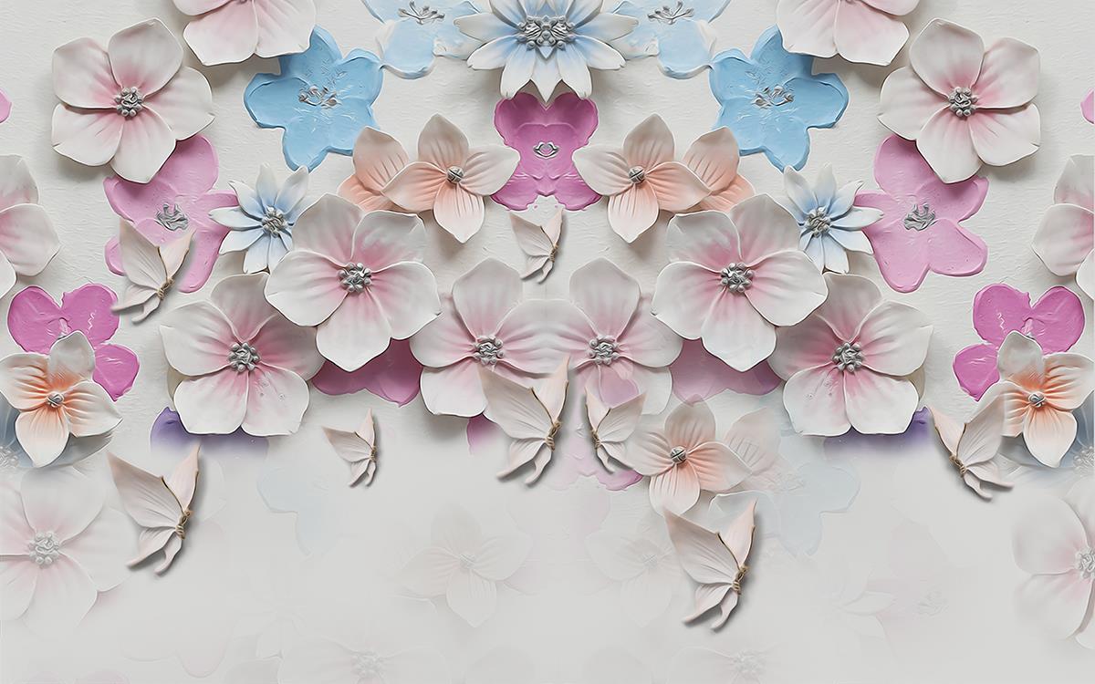پس زمینه صورتی سه بعدی با گل وپروانه های سفید و طلایی برجسته