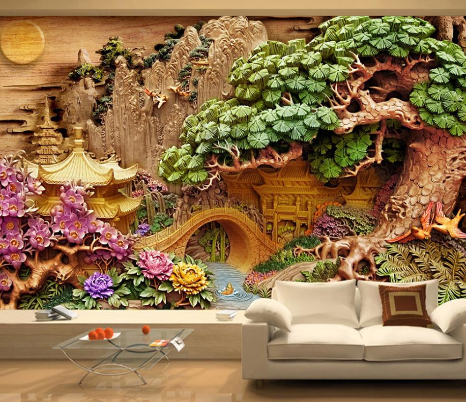 منظره گرافیکی شرقی با کوهستان و درخت