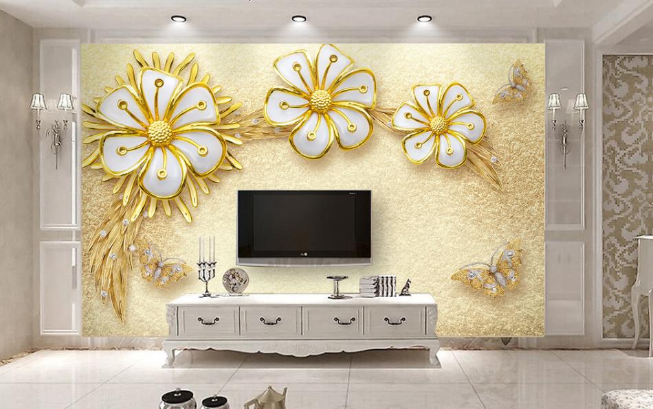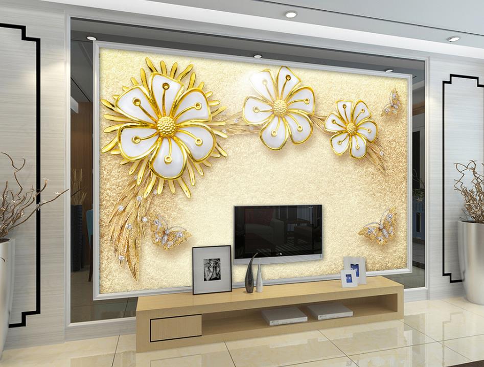 گل های طلایی برجسته با زمینه ساده