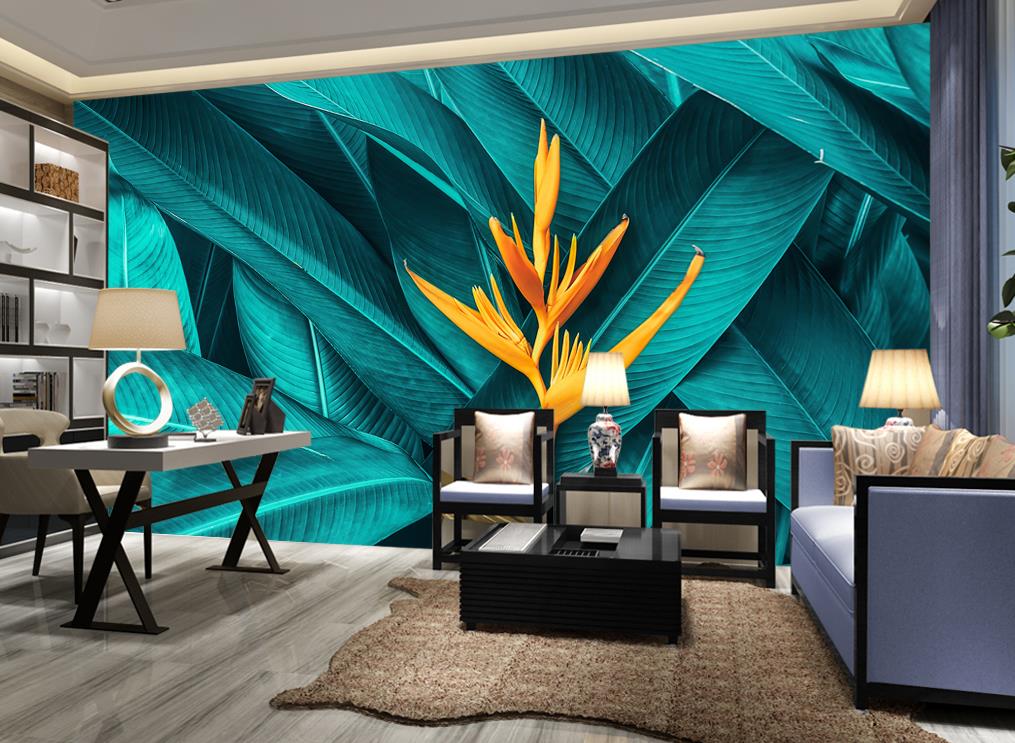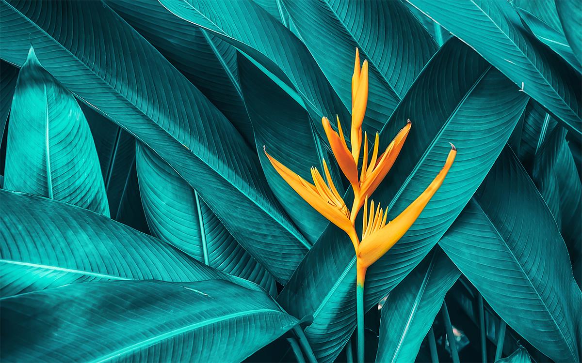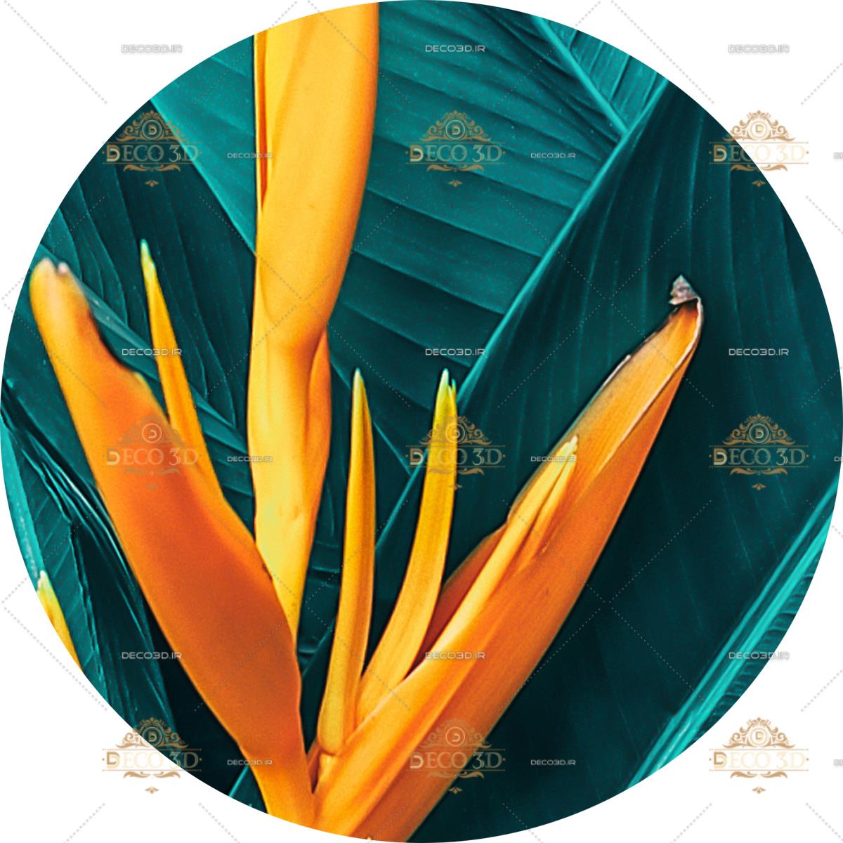 گل نارنجی و برگ های آبی