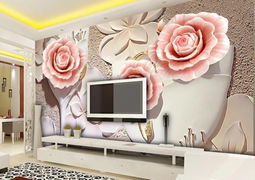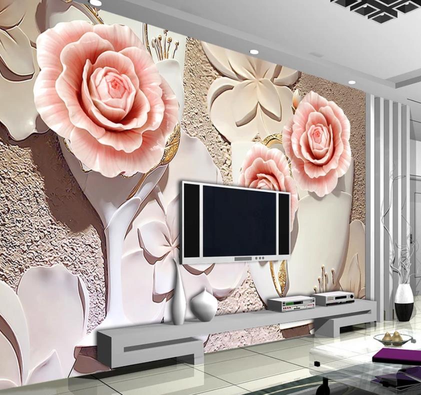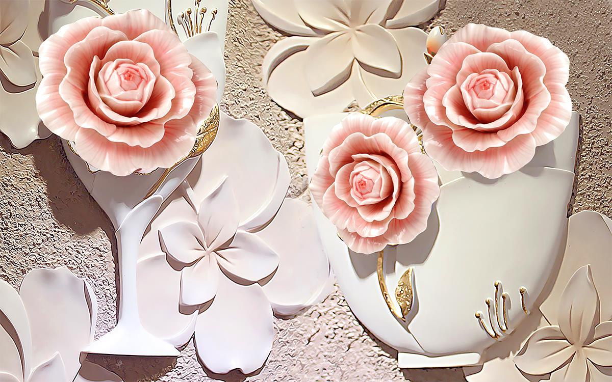 گل های رز کرمی سه بعدی با پترن شاخه و گل