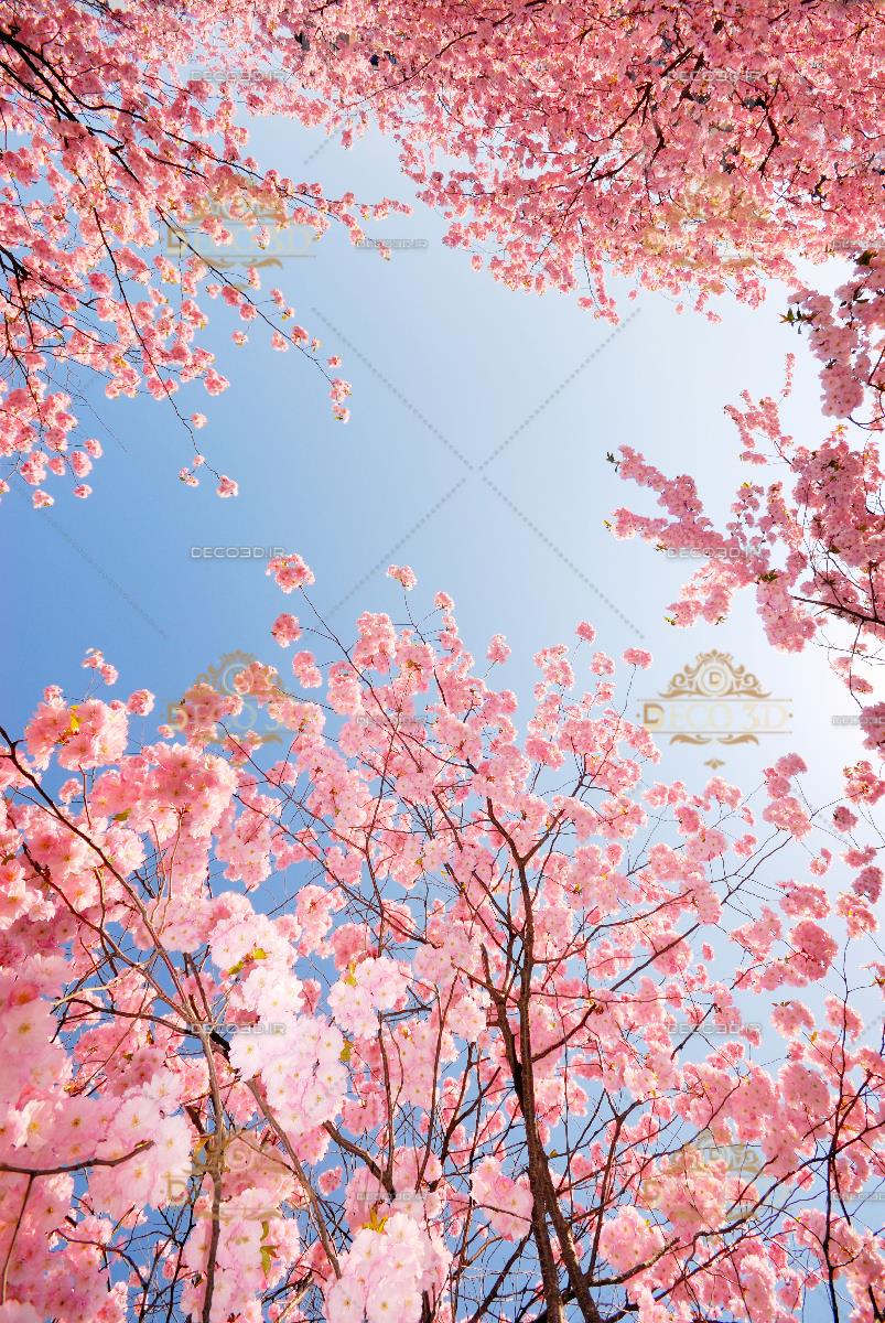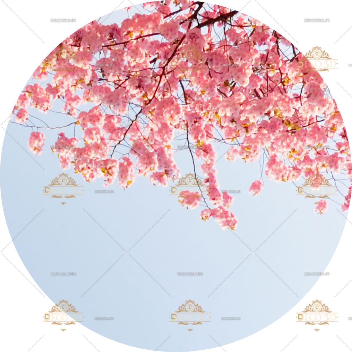 درخت با شکوفه های صورتی و آسمان آبی