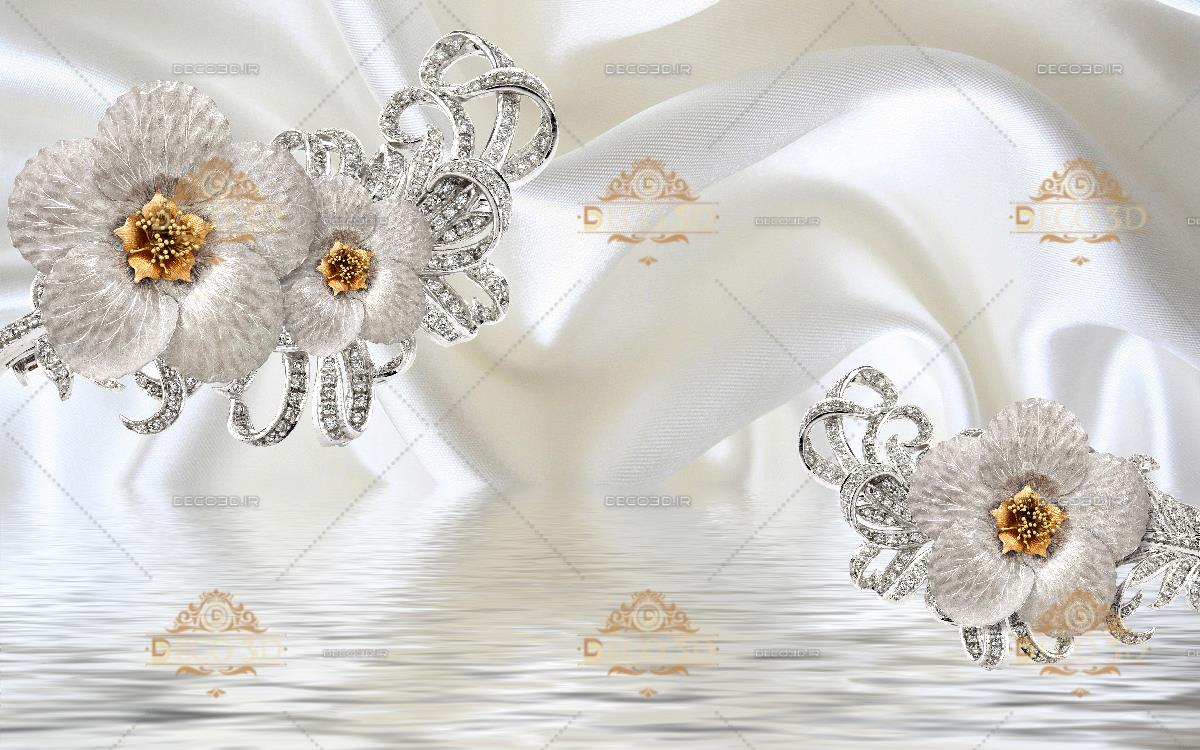 پس زمینه سه بعدی بنفش با گلهای برجسته سفید وطلایی