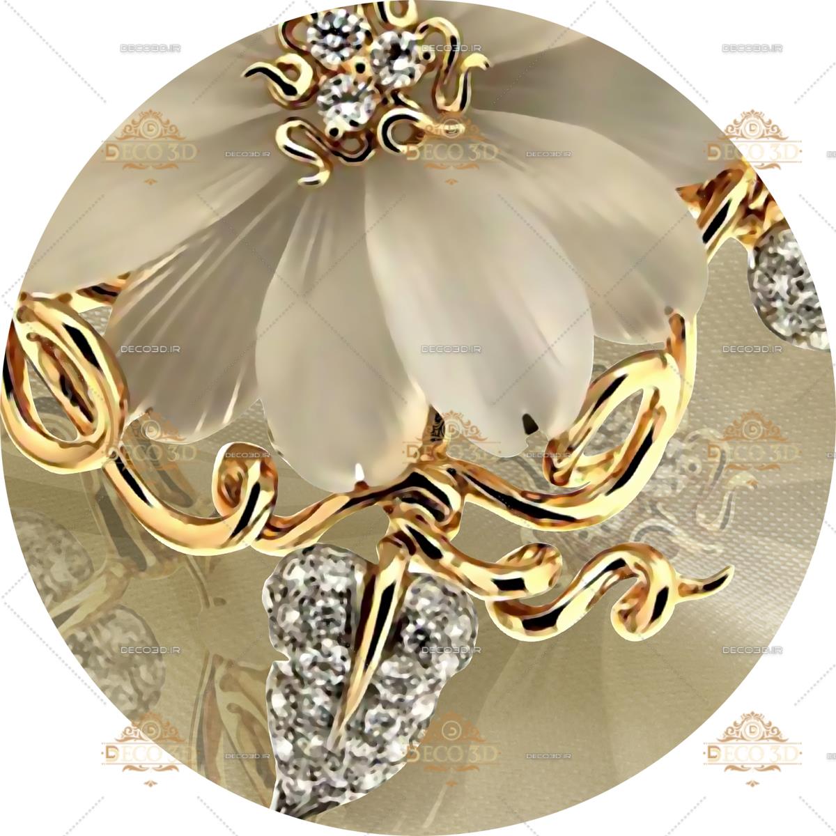 گل های طلایی برجسته و حلقه های سفید