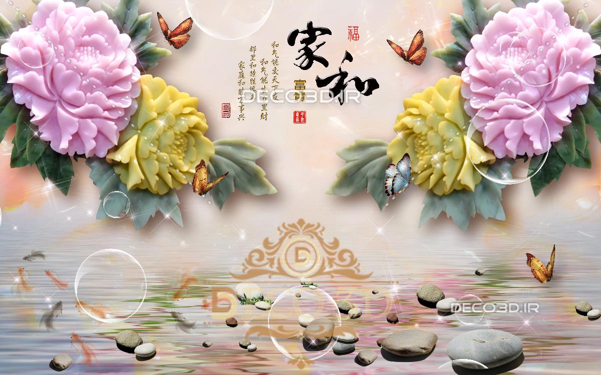 پس زمینه صورتی و گلهای نگین دار و پروانه