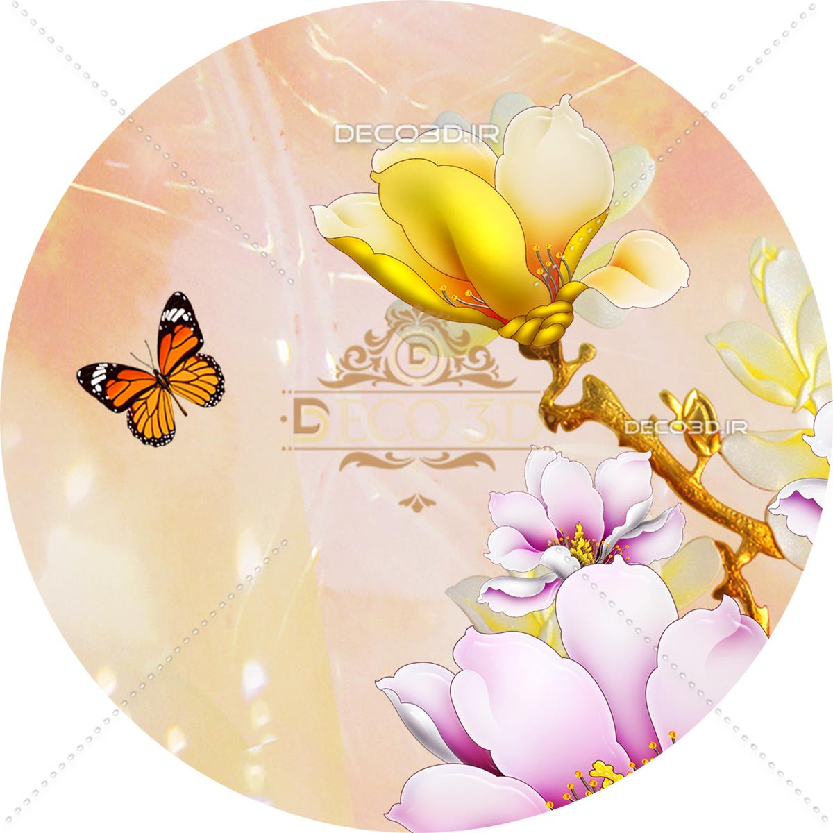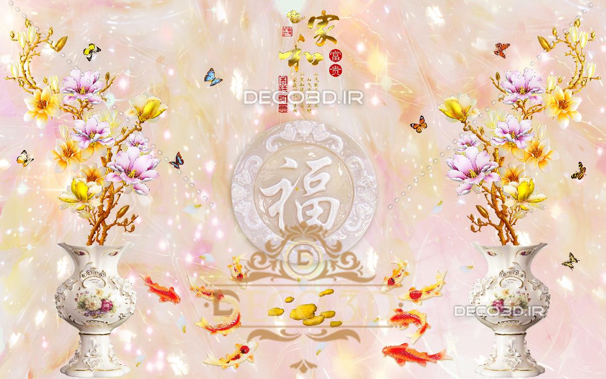 گل ها، پروانه ها و ماهی ها با زمینه مرمرین