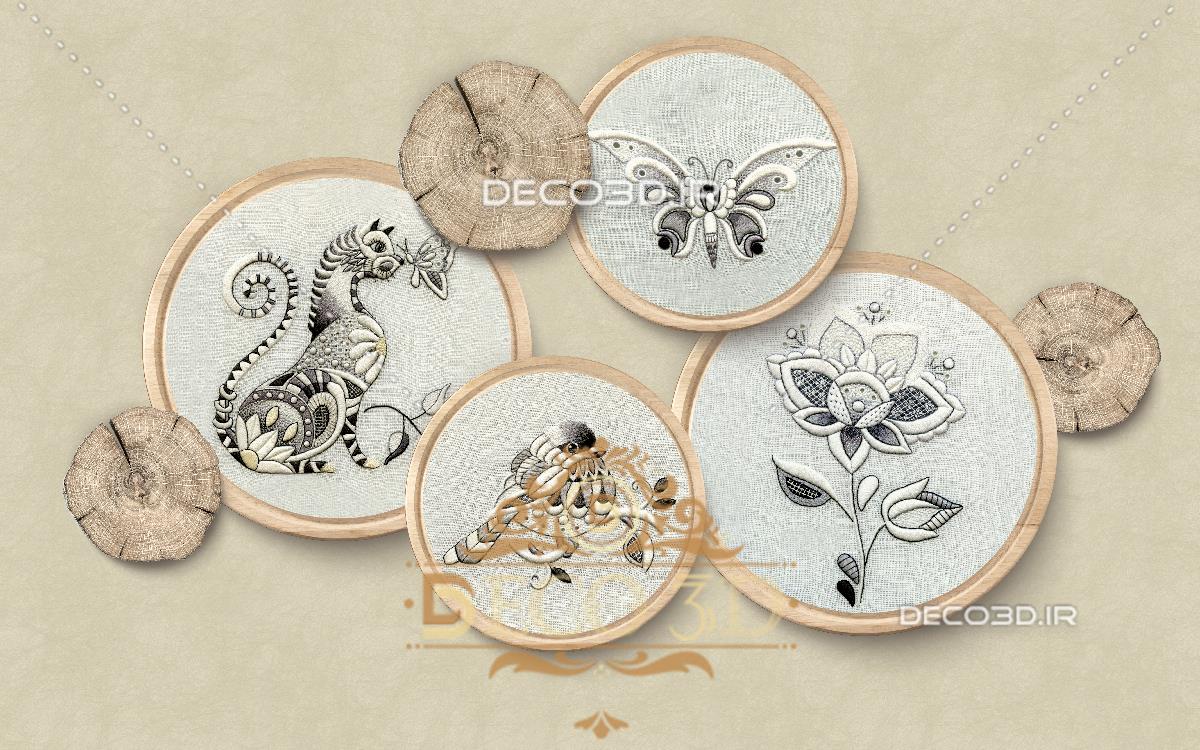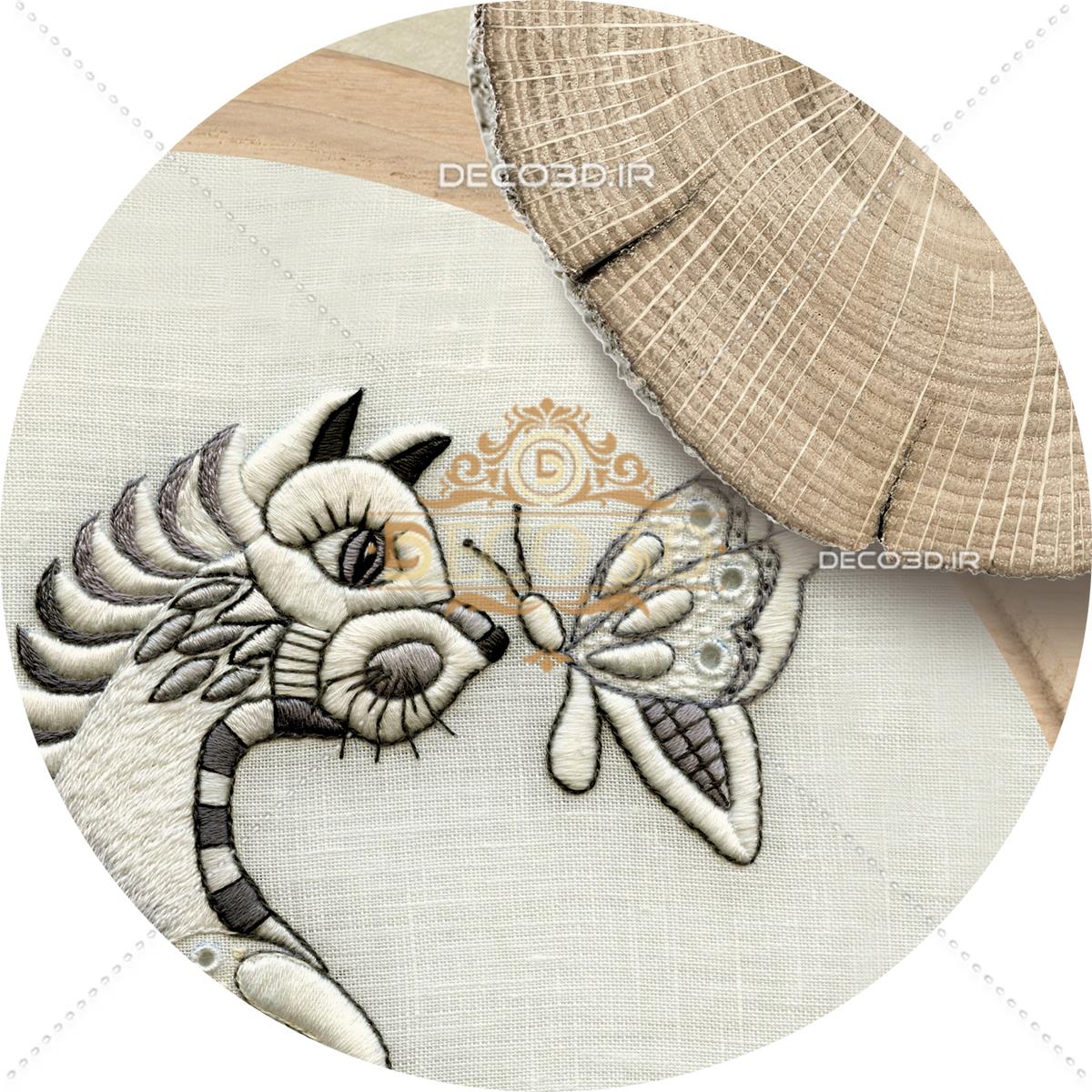 طرح دایره ای گلدوزی شده حیوانات با چوب