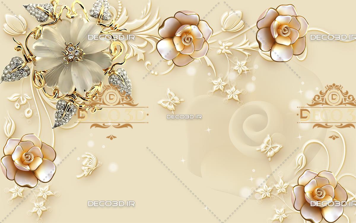 گلهای سفید طرح چینی با پروانه ها و زمینه مکعب