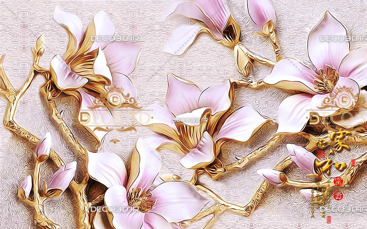 گل های پنج پر برجسته با شاخه های طلایی