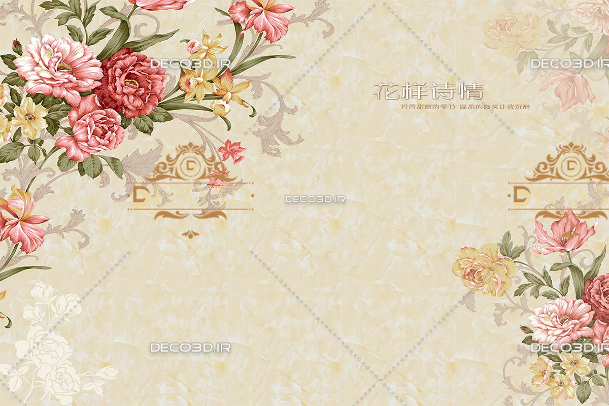 گلهای خمیری صورتی با گلبرگ فلورال طلایی