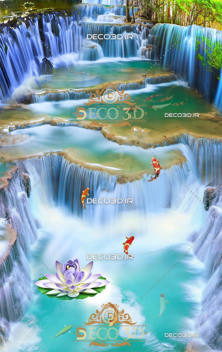 آبشار زیبا و ماهی های قرمز
